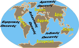 Παρατηρώντας τη Γη διαπιστώνουμε ότι στο βόρειο ημισφαίριο η ξηρά καταλαμβάνει περισσότερο τμήμα από ότι στο νότιο που τη μεγαλύτερη έκταση έχει η θάλασσα